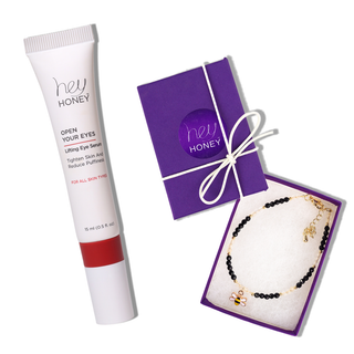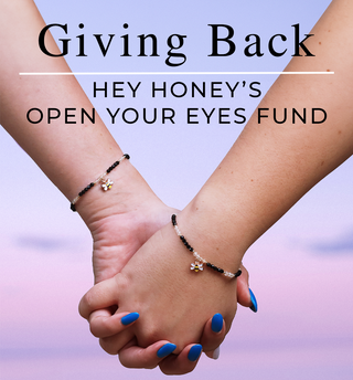 Our Hey Honey Open Your Eyes Lifting Eye Serum & Giving Bee Citrine Charm Bracelet, that specifically benefit the fund. Every penny from your purchase will directly support the Hey Honey Fund!