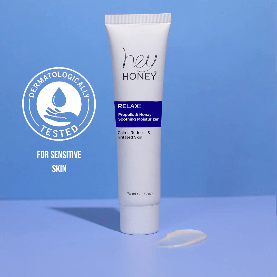 A: Hey Honey Relax is gentle enough for sensitive skin and helps reduce visible redness, dryness, and discomfort.